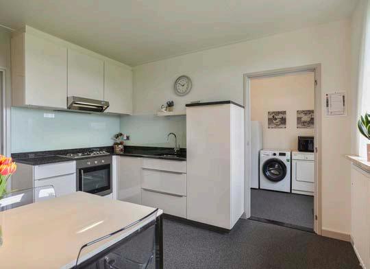 Naast de keuken is er ook nog een ruime bijkeuken aanwezig. Hier vind je niet alleen de CV-ketel, maar ook de aansluiting voor het witgoed.