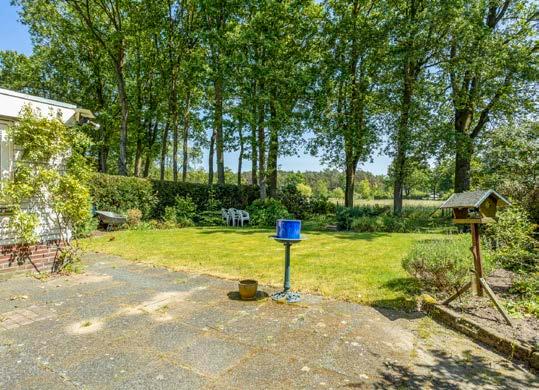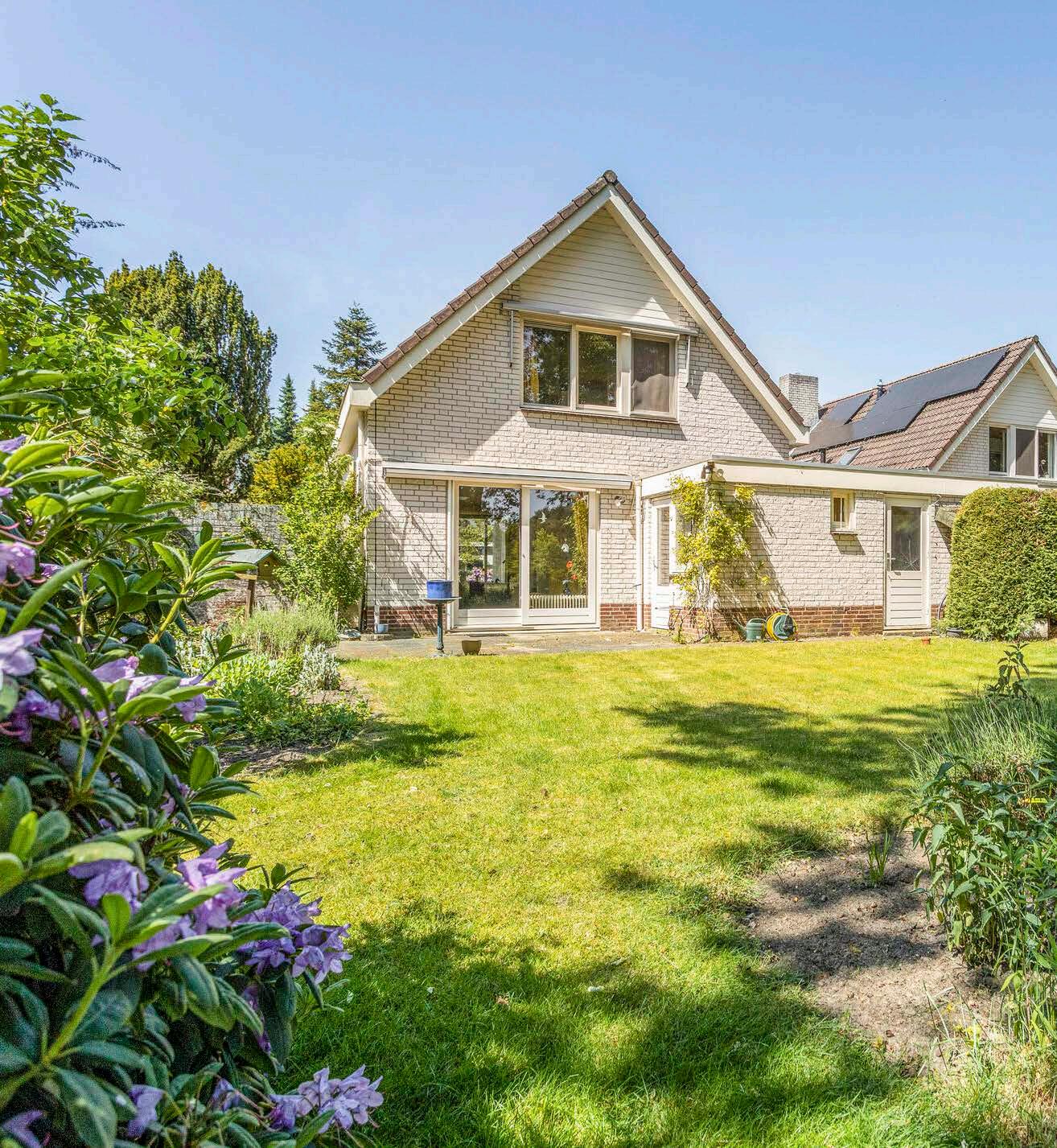 Buiten geniet je van een heerlijke riante tuin op het zuidoosten, met een terras, gazon en vaste beplanting. Hier kun je optimaal ontspannen en genieten van het prachtige vrije uitzicht en de privacy. Daarnaast is er een inpandige garage aanwezig, voorzien van elektra en een kantelpoort.