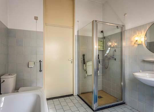 De verzorgde badkamer is voorzien van een ligbad, toilet, douche en wastafel.