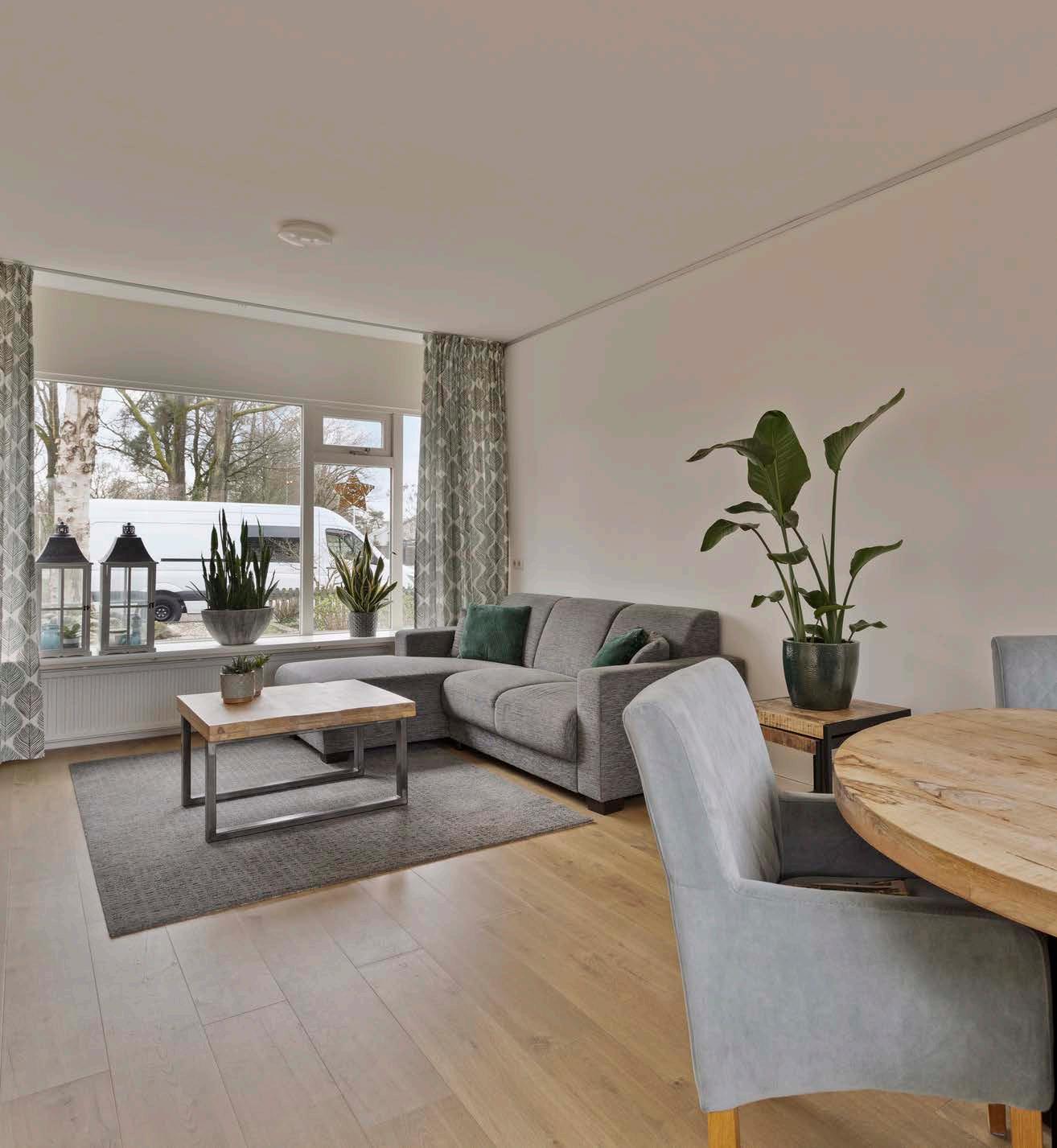 De woonkamer van dit huis in Berkenoord 1 is een oase van licht. Dankzij de grote ramen stroomt het daglicht rijkelijk binnen, wat de ruimte een open en uitnodigend gevoel geeft. Dit natuurlijke licht draagt bij aan een positieve sfeer en kan je energieniveau verhogen, wat vooral in de donkere maanden een welkome toevoeging is. Het licht accentueert de frisse, neutrale kleuren van de muren en vloeren, waardoor je interieur tot leven komt. Of je nu een boek leest, speelt met de kinderen of thuiswerkt, het licht zorgt voor een aangename ambiance in je dagelijkse leven.