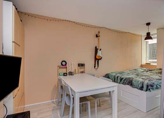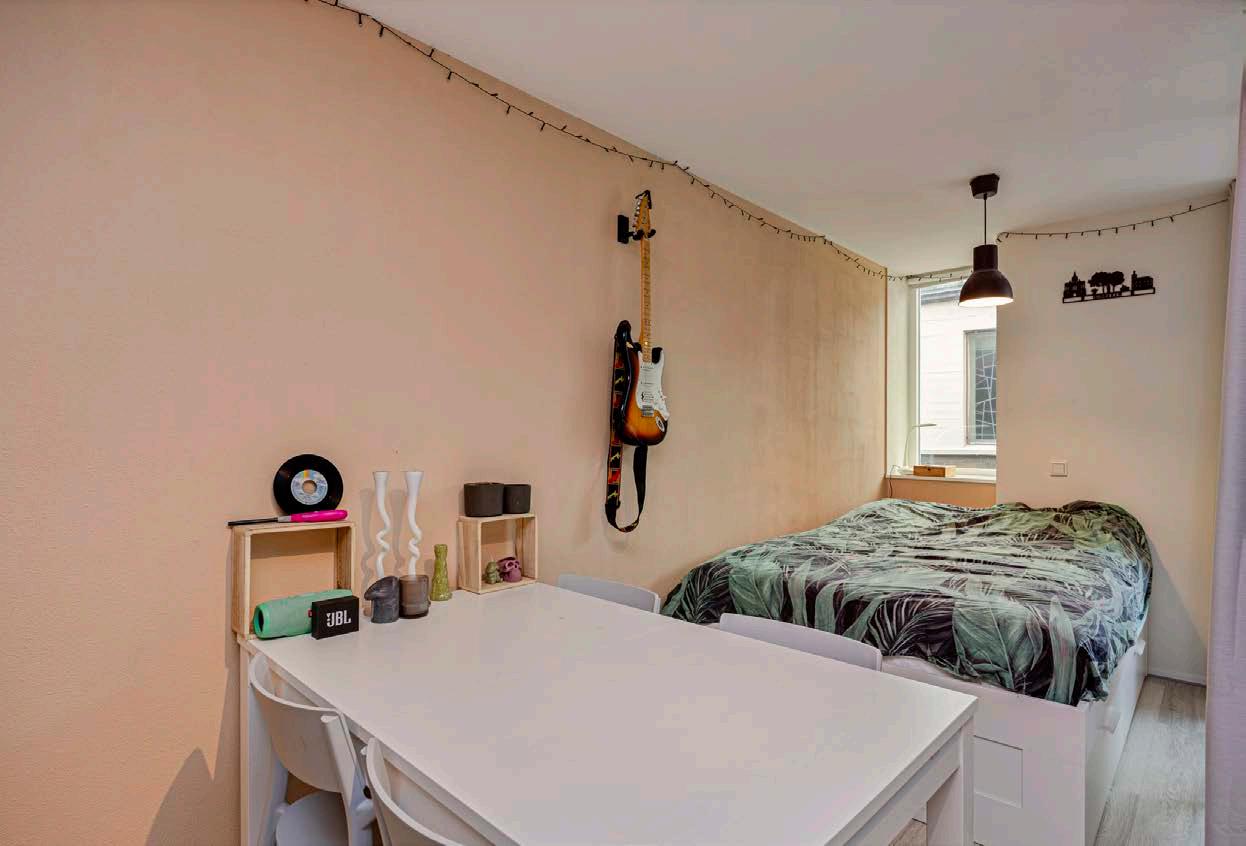 Zodra je binnenstapt in deze 26m² tellende studio, voel je het direct: dit is een plek waar je leeft, lacht en je dromen waarmaakt. De ruimte is slim ingedeeld, waardoor elk hoekje van je huis een functie heeft. De grote ramen zorgen voor een overvloed aan natuurlijk licht, wat de kamer een open en uitnodigende sfeer geeft.