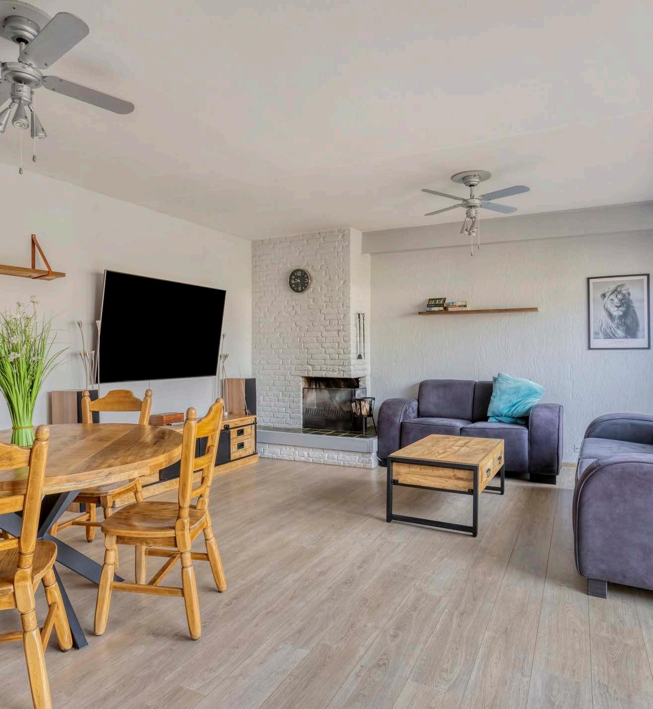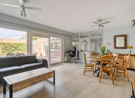 In de living staat sfeer centraal. De open haard vormt letterlijk en figuurlijk het warme hart van de woning. De brede laminaatdelen, het strakke stucwerk, de ingebouwde spotverlichting en de schuifpui naar de tuin zorgen voor een modern en tegelijkertijd huiselijk gevoel. Dankzij de ligging op het zuidwesten valt het zonlicht rijkelijk naar binnen en zorgt de elektrische zonneluifel voor comfort op warme dagen. huizen
