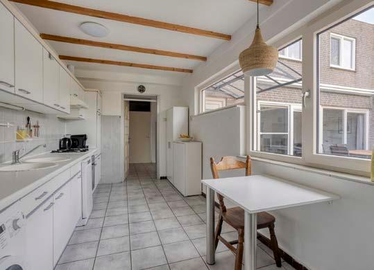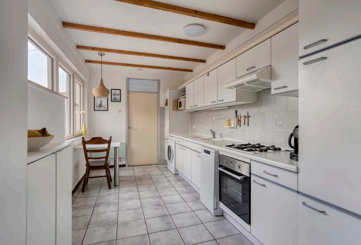 De royale leefkeuken is meer dan alleen functioneel – het is een plek waar gekookt, gepraat, gelachen en geleefd wordt. Een grote raampartij biedt uitzicht op de tuin, terwijl je kookt op het 4-pits gasfornuis of de oven gebruikt voor een familiemaaltijd. Vanuit de keuken loop je direct door naar de bijkeuken met toegang tot de tuin –ideaal als extra bergruimte of voor de was.