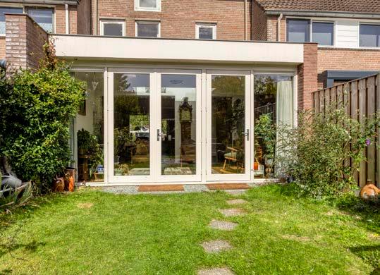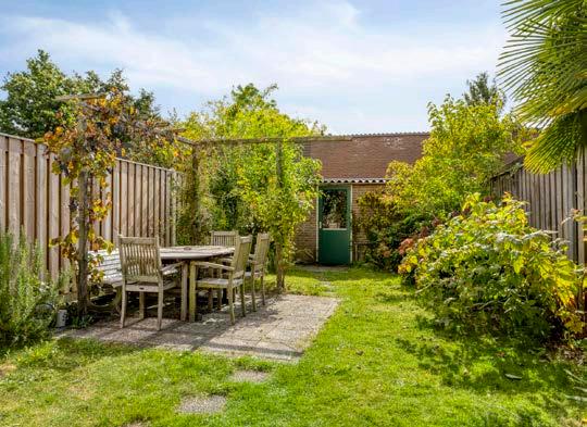 De buitenruimte is het ultieme verlengstuk van de woning. De zonnige achtertuin op het zuidoosten nodigt uit tot ontspannen. Van een barbecue met vrienden tot een kopje koffie in de ochtendzon –hier geniet je volop. De groene borders zorgen voor een gezellige, natuurlijke sfeer, en met een stenen berging en een vrije achterom is deze tuin ook nog eens ontzettend praktisch.