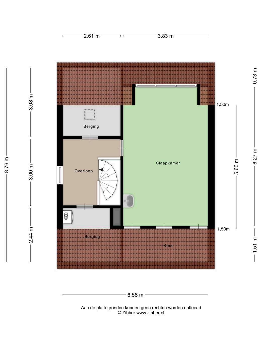 De vaste trap leidt naar de royale zolderverdieping, waar zich de vierde slaapkamer bevindt. Dankzij de dakkapel voelt deze ruimte ruim en licht aan. Aan beide zijden zijn er aparte bergingen, waardoor je altijd plek hebt voor koffers, seizoensspullen of archiefmateriaal.