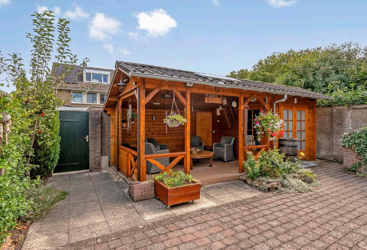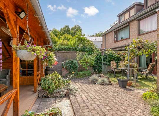De tuin is breed, verzorgd en onderhoudsvriendelijk aangelegd. Sierbestrating wordt afgewisseld met volwassen beplanting, en achterin de tuin staat een degelijk houten tuinhuis met overkapping. Hier geniet je van lange zomeravonden of creëer je een buitenkantoor, hobbyruimte of atelier. De brede oprit biedt plaats aan meerdere auto’s, met zelfs voorzieningen voor een elektrische laadpaal.