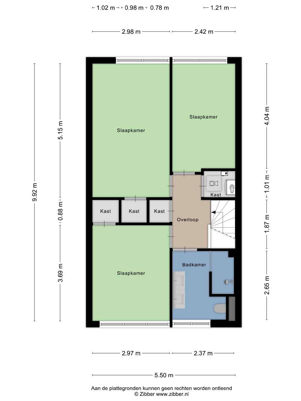 De overloop is voorzien van twee vaste kasten (cv en wasmachine). De woning is voorzien van drie slaapkamers; twee met vaste kast, hor en rolluik. Strakke, volledig betegelde badkamer met inloopdouche, wandcloset, dubbel meubel, designradiator en inbouwspots.