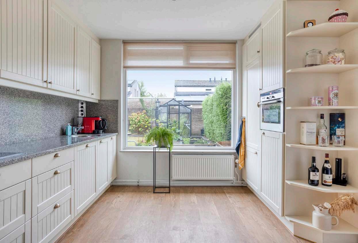 Zes jaar geleden stapte ik voor het eerst binnen en het voelde meteen bijzonder. Van buiten oogt het huis bescheiden, maar zodra je de woning inloopt, ontvouwt het huis zich steeds verder naar achteren. De serre is een echte verrassing en gaf meteen dat “wow”-gevoel. En ook de grote ramen in de keuken, met uitzicht op de royale tuin, maakte dat ik direct verkocht was. Ik hou van buiten zijn, en het is nog steeds heerlijk om vanuit de keukentafel te werken terwijl je de vogels in de tuin ziet neerstrijken.