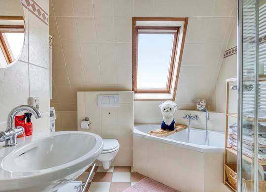 De overloop geeft toegang tot drie slaapkamers en de badkamer. De slaapkamers zijn ruim, voorzien van laminaatvloeren en strak afgewerkte wanden. De badkamer is compleet uitgevoerd met ligbad, douchecabine, zwevend toilet, wastafel en designradiator. Daarnaast zijn hier ook de aansluitingen voor wasapparatuur aanwezig.
