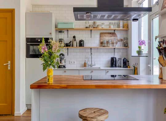 De open keuken aan de achterzijde is een plek waar koken en leven samenkomen. Dankzij de moderne rechte opstelling én het schiereiland is er volop werk- en bergruimte. De keuken is uitgerust met een oven, vaatwasser, inductiekookplaat, afzuigkap en koelkast. Via de openslaande terrasdeuren stap je zo de achtertuin in: een verlengstuk van je leefruimte.
