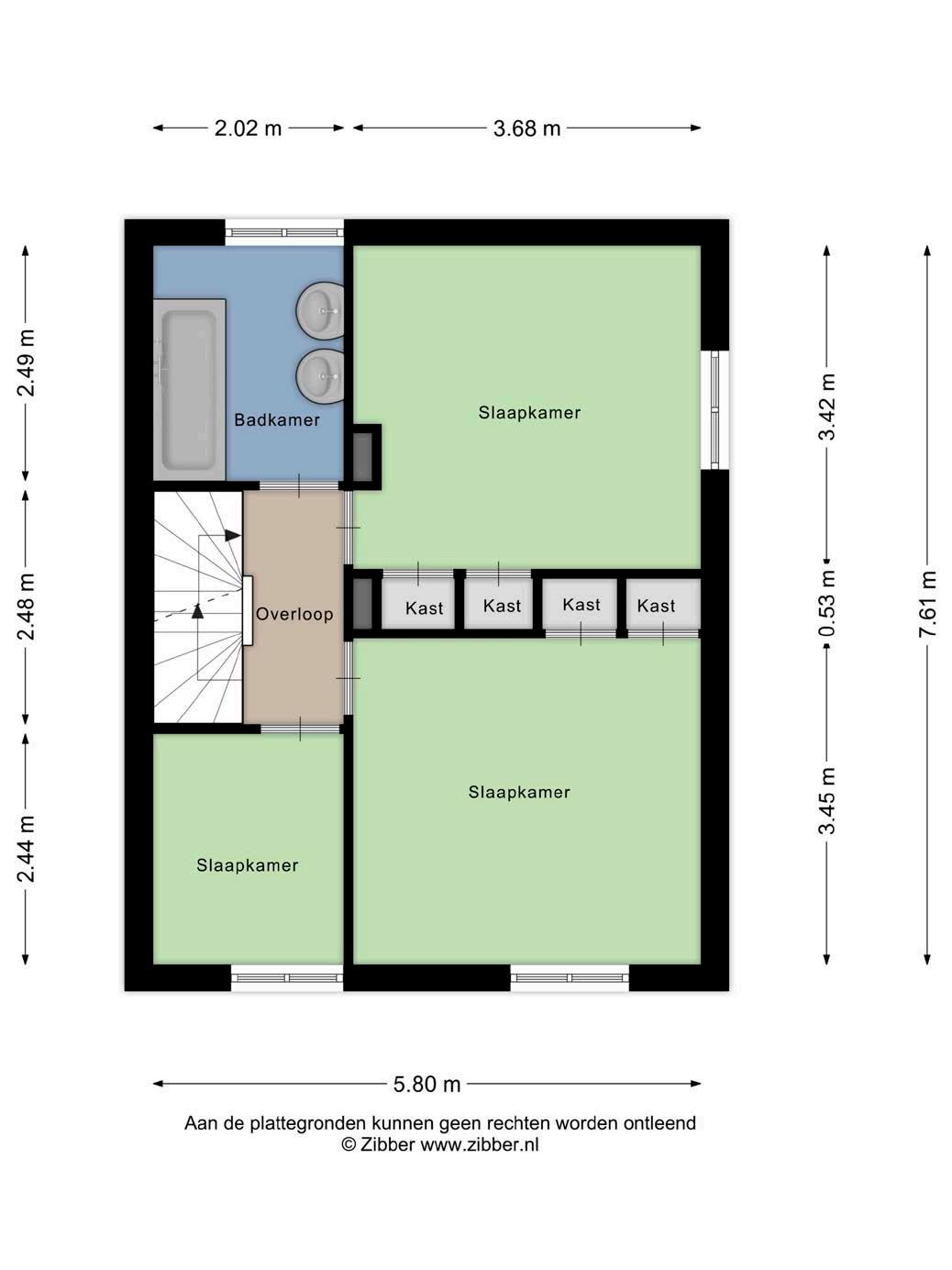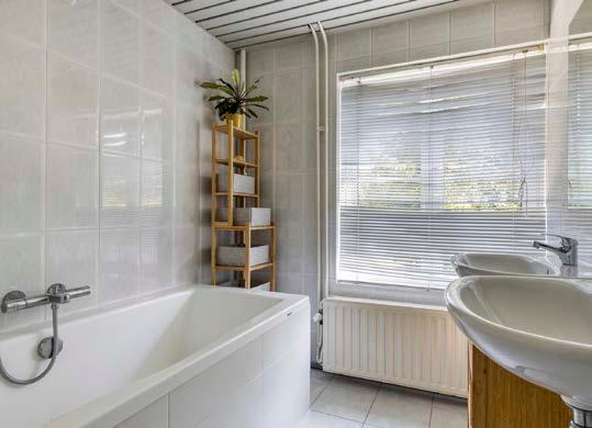 De overloop geeft toegang tot drie goed bemeten slaapkamers. Twee ervan zijn voorzien van praktische inbouwkasten. Alle kamers zijn netjes afgewerkt en beschikken over strak stucwerk. De ruime badkamer is volledig betegeld en uitgerust met een ligbad, twee wastafels en inbouwspots –een fijne plek om te ontspannen. De zolder is slim ingedeeld met een vierde slaapkamer, voorzien van een dakkapel en ingebouwde kast. Hier is ook de overloop met ruimte voor de wasmachine én de cv-combiketel.