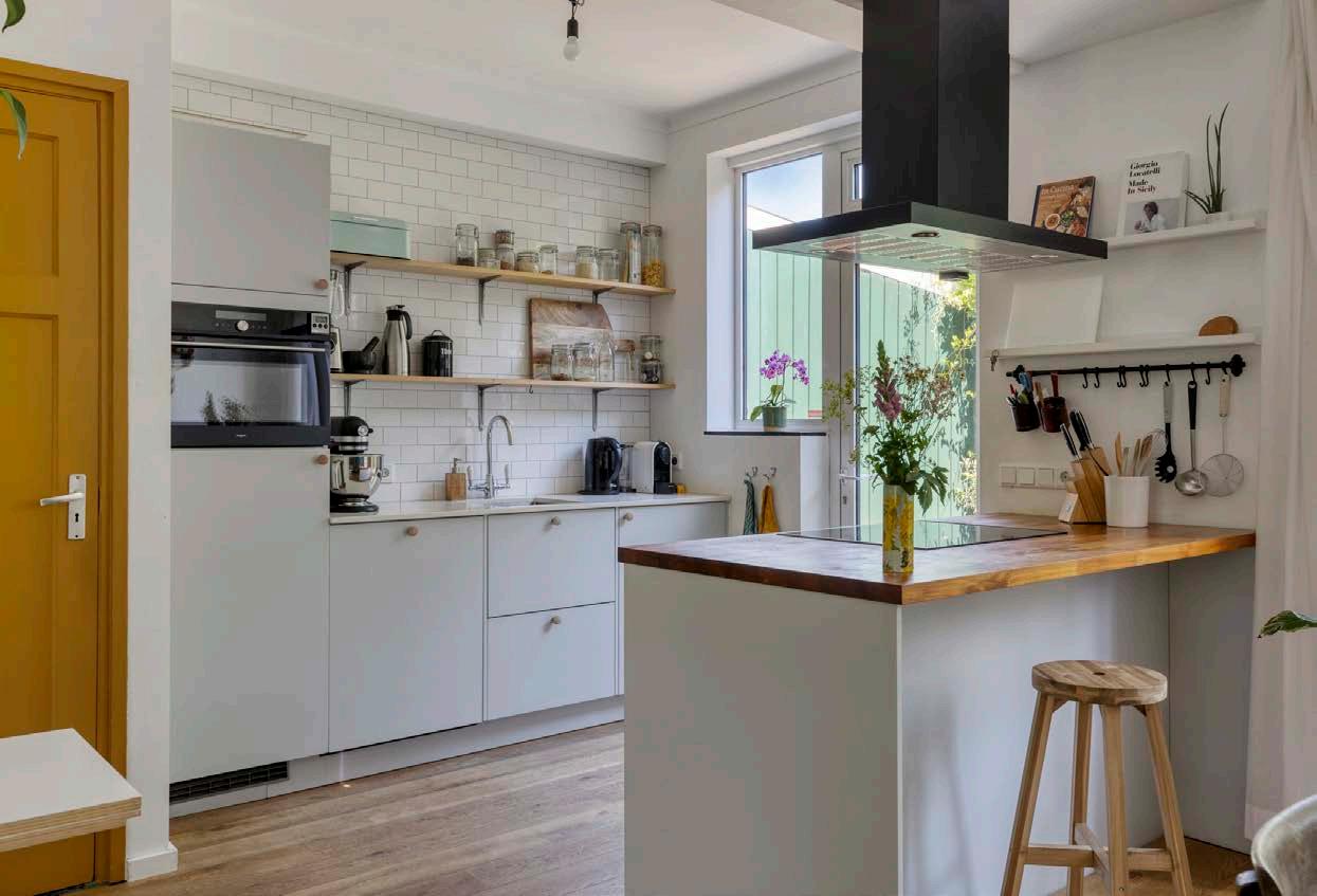De woning zelf voelt ruim en licht aan. Beneden is er een gezellige woonkamer met een open keuken die we in 2019 hebben laten plaatsen. De openslaande tuindeuren zijn heel fijn in het voorjaar en de zomer. De tuin is ruim en biedt veel privacy. Met een handig schuurtje om spullen op te slaan.