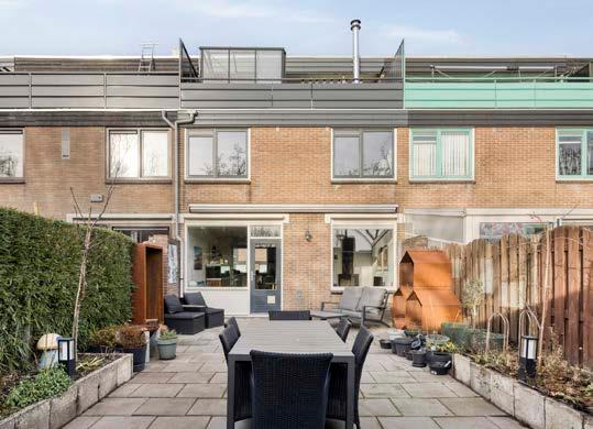 Geniet van het buitenleven in de fijne achtertuin op het zuiden. Met een ruime overkapping is dit dé plek om te ontspannen en lange zomeravonden door te brengen. En dat is nog niet alles: het riante dakterras met een kweekkas biedt een unieke mogelijkheid om je eigen groenten en kruiden te verbouwen en tegelijkertijd van de zon te genieten.