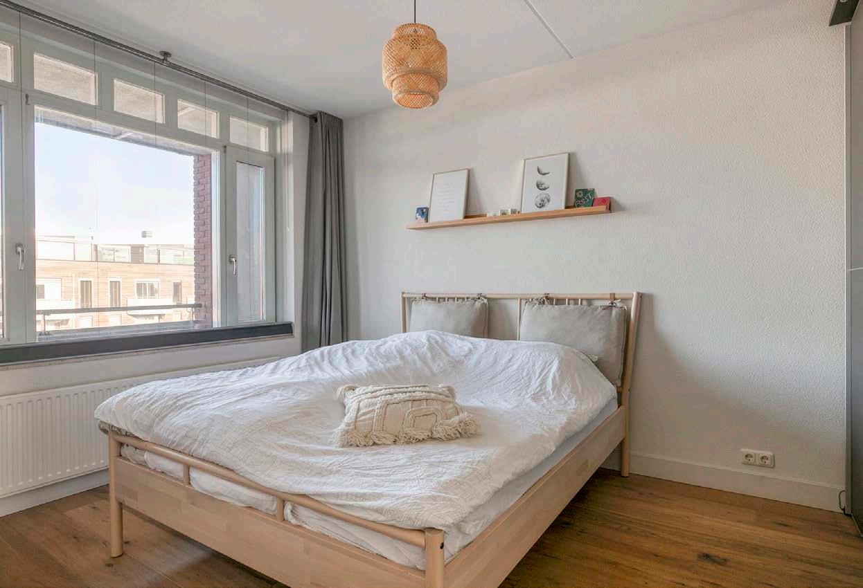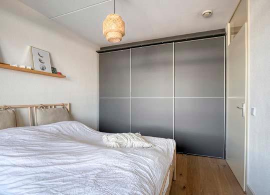 Met twee slaapkamers biedt deze woning volop mogelijkheden. De master bedroom is ruim genoeg voor een comfortabel bed en een gezellige sfeer, terwijl de tweede slaapkamer als ideale werkplek, logeerkamer of hobbyruimte naar wens kan worden ingericht. Beide kamers zijn voorzien van inbouwkasten, zodat je altijd voldoende opbergruimte hebt om opgeruimd te blijven.