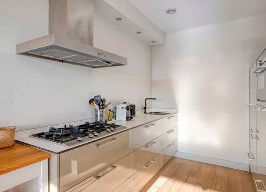 De moderne keuken is een echte eyecatcher dankzij het strakke design en praktische indeling. Uitgerust met inbouwapparatuur zoals een combioven, inductiekookplaat en afzuigkap, maakt deze keuken uitgebreid koken of een snelle maaltijd bereiden tot een waar genot. Ruime kasten en een praktisch werkblad zorgen voor gemak en functionaliteit in elke culinaire situatie.