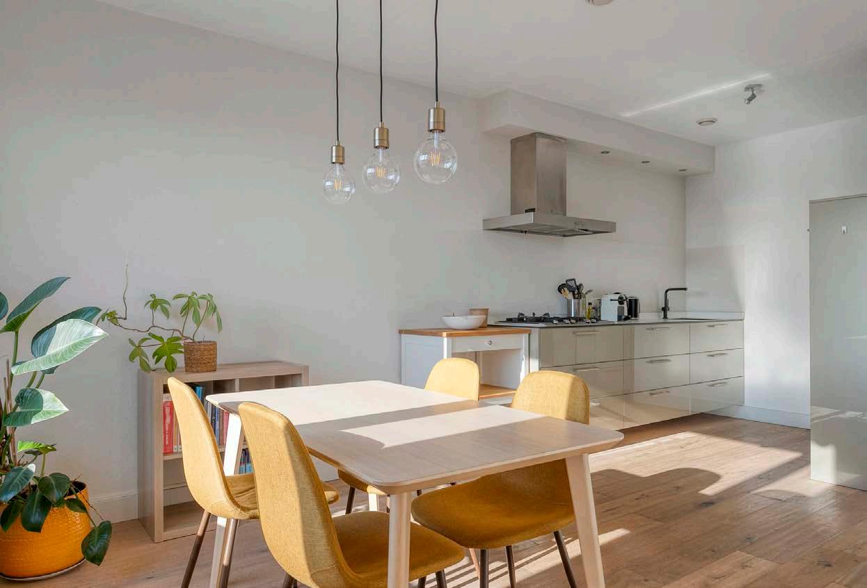 De ruime, lichte woonkamer vormt het kloppend hart van deze woning. Grote ramen zorgen voor een overvloed aan natuurlijk licht, terwijl de open indeling voldoende ruimte biedt voor ontspanning, gezellig samenzijn of zelfs een werkplek. De neutrale afwerking maakt het eenvoudig om de ruimte persoonlijk in te richten en jouw eigen stijl te laten spreken.