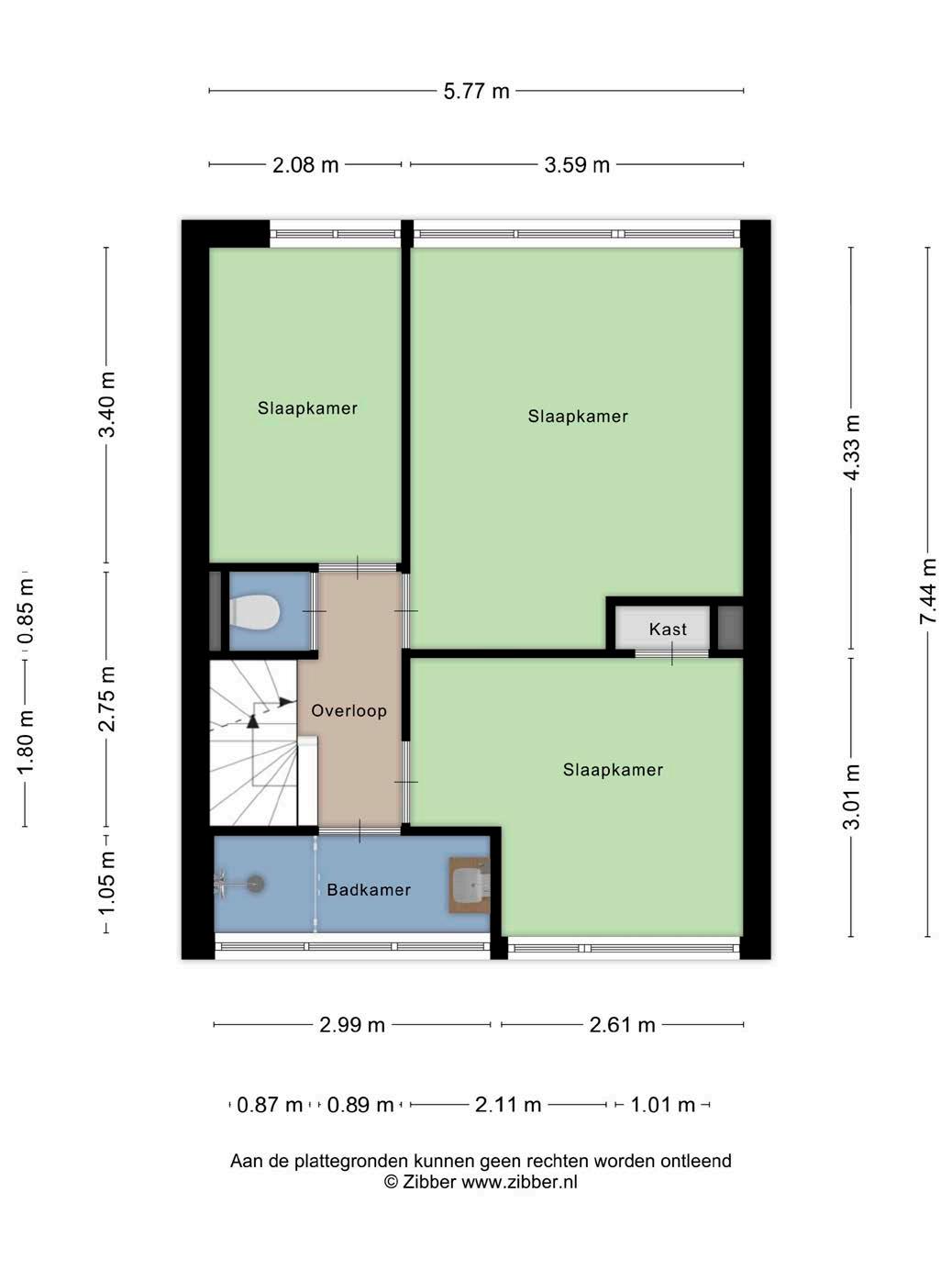 Op de eerste verdieping bevinden zich drie slaapkamers, de badkamer en een separaat toilet. De kamers zijn licht, netjes afgewerkt en voorzien van een doorlopende laminaatvloer. Eén van de slaapkamers beschikt bovendien over een praktische vaste kast. Via een vaste trap bereik je de zolderverdieping. Op de voorzolder bevinden zich de opstelplaats van de cv-ketel, de ventilatieunit en de aansluitingen voor wasapparatuur. De zolderkamer is een volwaardige extra ruimte en wordt dankzij de dakkapel aan de achterzijde prettig verlicht. Daarnaast is er praktische bergruimte achter de knieschotten aanwezig.