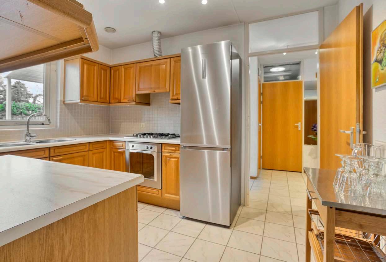De keuken is aan de voorzijde gelegen en biedt alle ruimte om jouw culinaire creativiteit tot leven te brengen. Wellicht kies je ervoor om deze ruimte volledig naar eigen wens te moderniseren; de mogelijkheden zijn eindeloos