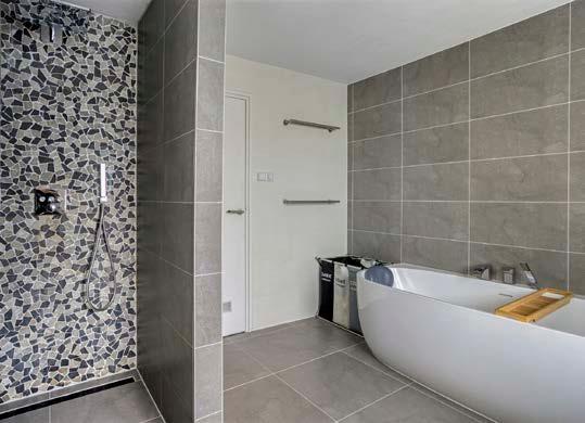 Het toppunt van ontspanning vind je in de ruime en moderne badkamer. Zodra je de deur opent, voelt het alsof je een luxe spa binnenstapt. Denk aan een perfect afgewerkte ruimte met strakke tegels en verfijnde details. Hier heb je alles wat je nodig hebt om stress van je af te laten glijden: een ruime inloopdouche voor de snelle ochtenden, een ligbad waar je heerlijk in weg kunt dromen, en een brede wastafel met genoeg plek voor al je spulletjes. Met de praktische indeling en de luxe uitstraling staat deze badkamer garant voor comfort én gemak. Of je nu kiest voor een verkwikkende start van de dag of een ontspannen afsluiter van een hectische week, hier kan het allebei.