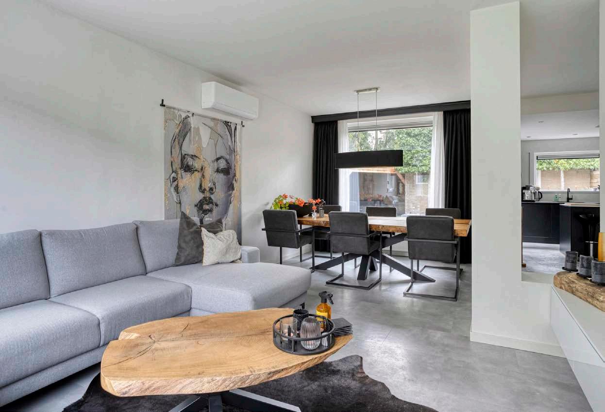 Welkom in het hart van je nieuwe thuis! De woonkamer straalt één en al warmte en gezelligheid uit. Dankzij de grote raampartijen stroomt het daglicht overvloedig naar binnen, wat niet alleen een ruimtelijk gevoel creëert, maar de hele ruimte ook bruist van energie. Zie je jezelf al zitten op een comfortabele bank met een goede kop koffie, omringd door persoonlijke accenten zoals boeken, kunst of een stapeltje kussens? De vloeren zijn strak en modern, maar tegelijkertijd huiselijk – een perfecte balans tussen stijlvol en knus. Vanuit de woonkamer loop je soepel door naar de open keuken, zodat je altijd verbonden bent met gasten of familie, zelfs tijdens de drukte van het koken.