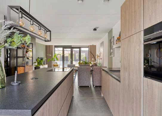 Zodra je verder loopt kom je in de keuken welke in verbinding staat met de woonkamer. De keuken heeft een eiland met granieten werkblad en is voorzien van diverse A merken inbouwapparatuur waaronder een inductiekookplaat met geïntegreerde afzuiging, combi magnetron, koelkast, vriezer en quooker kraan.
