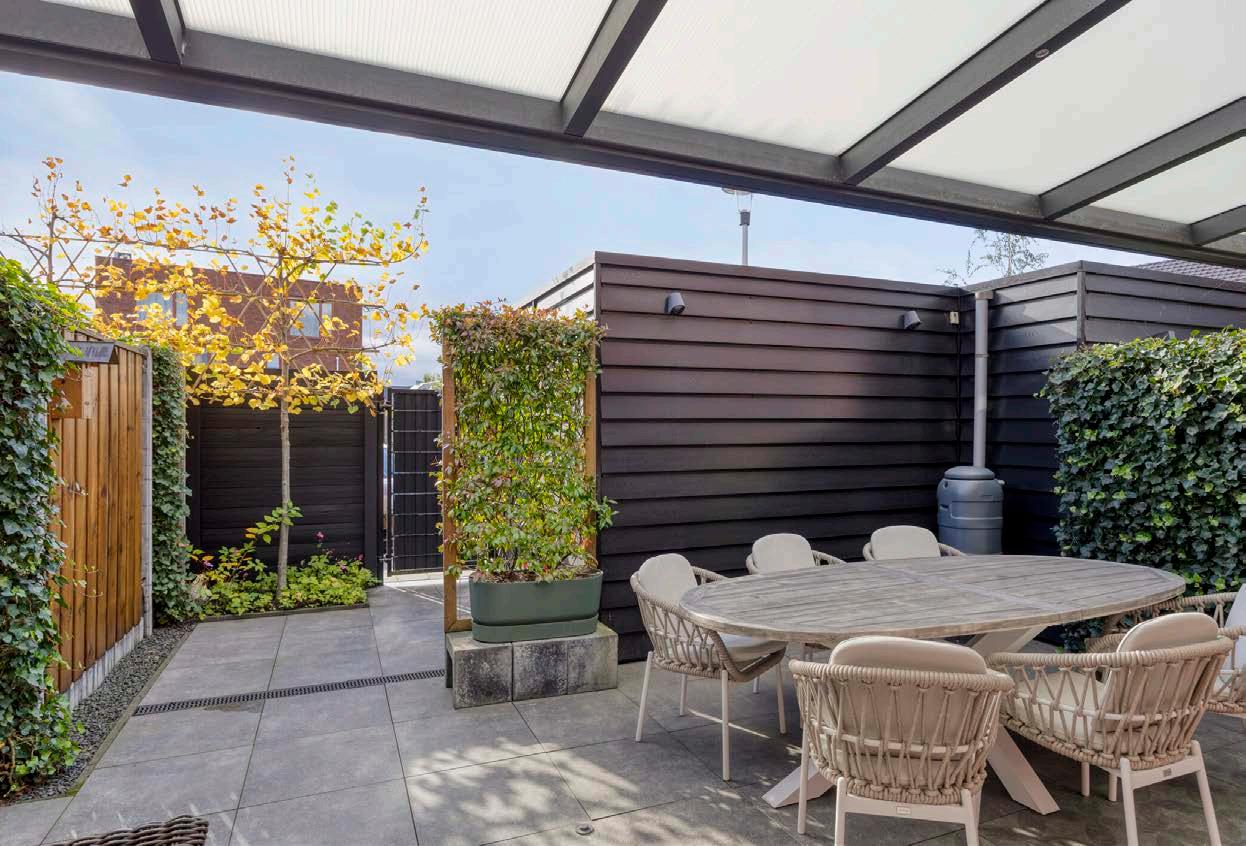 De achtertuin is onderhoudsvriendelijk aangelegd met een overkapping en is gesitueerd op het zuidwesten. Tevens beschikt de tuin over een vrijstaande berging en een achterom naar de achtergelegen openbare parkeerplaats.