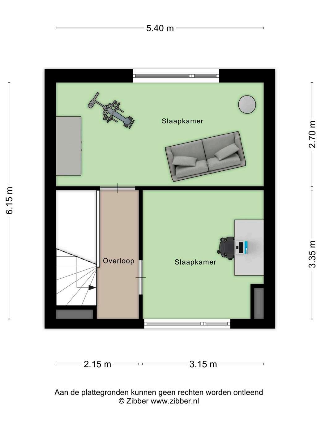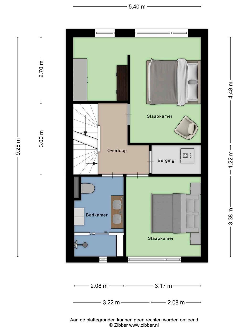 Overloop, 2 ruime slaapkamers.