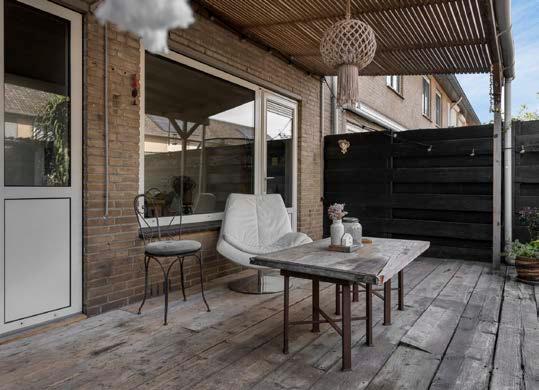 Achtertuin op het westen: genieten in de zon De mooie achtertuin is de plek waar je ultiem tot rust komt. Het terras met overkapping biedt schaduw als het nodig is, terwijl het zonnige gazon ideaal is voor kinderen of voor die gezellige barbecueavond met vrienden. En dankzij de stenen berging en overdekte fietsenstalling blijft alles netjes georganiseerd.