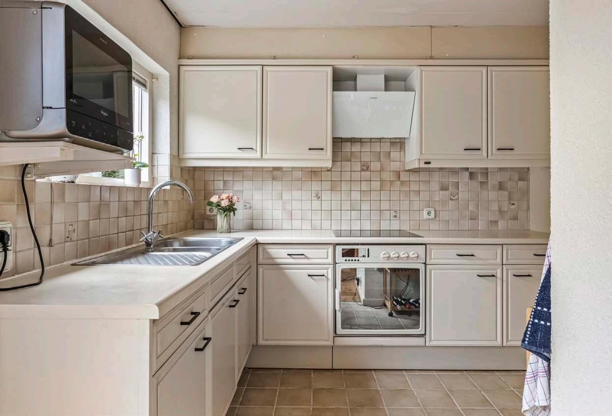 De living is goed ingedeeld en heeft een half open keuken in L-vormige opstelling. De keuken is uitgerust met diverse inbouwapparatuur en biedt volop werk- en bergruimte. Vanuit de woonkamer is er direct zicht (én toegang middels een schuifpui) op/naar de tuin.