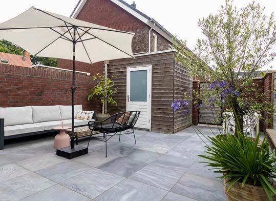 Vanuit de woonkamer loop je zo de zonnige achtertuin in. De tuin is volledig betegeld, wat betekent dat je hier nauwelijks onderhoud aan hebt. Dat geeft jou alle tijd om te genieten. Plaats je favoriete loungeset of een knusse eethoek en geniet van de verkoelende schaduw of de warme zonnestralen. Achterin de tuin vind je een vrijstaande houten berging, ideaal voor fietsen, gereedschap en meer. En oh, laten we de achterom niet vergeten: extra handig!