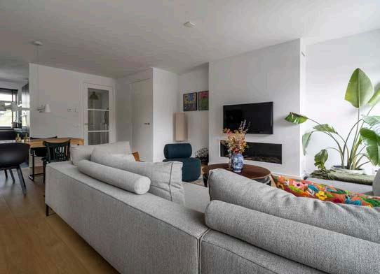Terwijl de gashaard een rustgevende warmte uitstraalt, kom je in de woonkamer volledig tot rust. De strakke afwerking van de lichte muren en de uitnodigende sfeer maken het plaatje compleet.