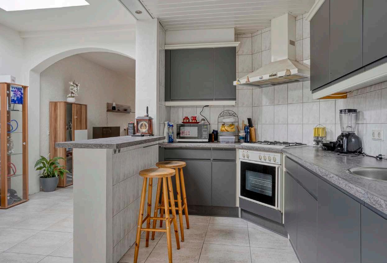 Aan de woonkamer grenst de semi-open keuken. Met zijn praktische indeling, eetbar en ingebouwde apparatuur nodigt deze ruimte uit om de lekkerste maaltijden te bereiden. Extra fijn: via de keuken stap je zó de tuin in. Het eerste kopje koffie in de ochtendzon of een barbecue in eigen achtertuin — hier kun je alle kanten op.