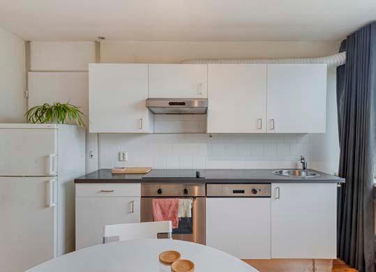 De open keuken is functioneel en slim ingedeeld. Denk aan voldoende kastruimte, plek voor je apparatuur en een gezellige indeling waar je snel een ontbijt klaarmaakt of ’s avonds geniet van een diner voor twee.