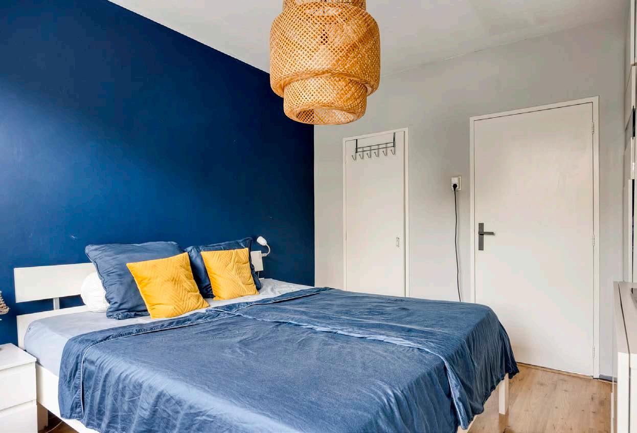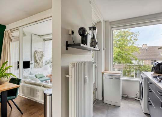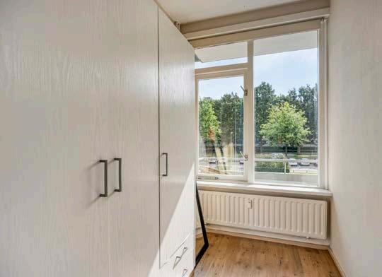De slaapkamer ligt aan de rustige zijde van het gebouw, waardoor je verzekerd bent van een goede nachtrust. Wij hebben hier de afgelopen zes jaar met veel plezier gewoond. Het contact met de buren is altijd prettig geweest — er hangt een fijne, ongedwongen sfeer in het gebouw.