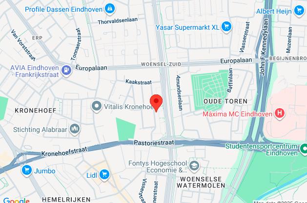 De ligging is ideaal: rustig, maar centraal. Voor de deur ligt een ruim plantsoen dat zorgt voor een groen en vrij gevoel. TU/e, Fontys, het Catharina Ziekenhuis en het stadscentrum zijn op loopafstand, en met vijf minuten fietsen sta je op het NS-station. Ook de uitvalswegen A2, A50 en A58 zijn snel bereikbaar.