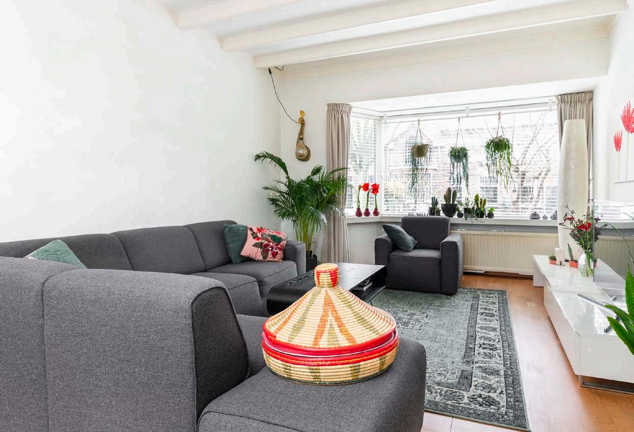 Een heerlijk huis, ruim, licht, en natuurlijk in een prachtige wijk. Hoewel het huis aan de voorkant lijkt op een ‘gewoon’ jaren-dertig huis, valt bij binnenkomst het speciale op: een heel ruim uitzicht, veel groen, veel mogelijkheid om buiten te zitten.