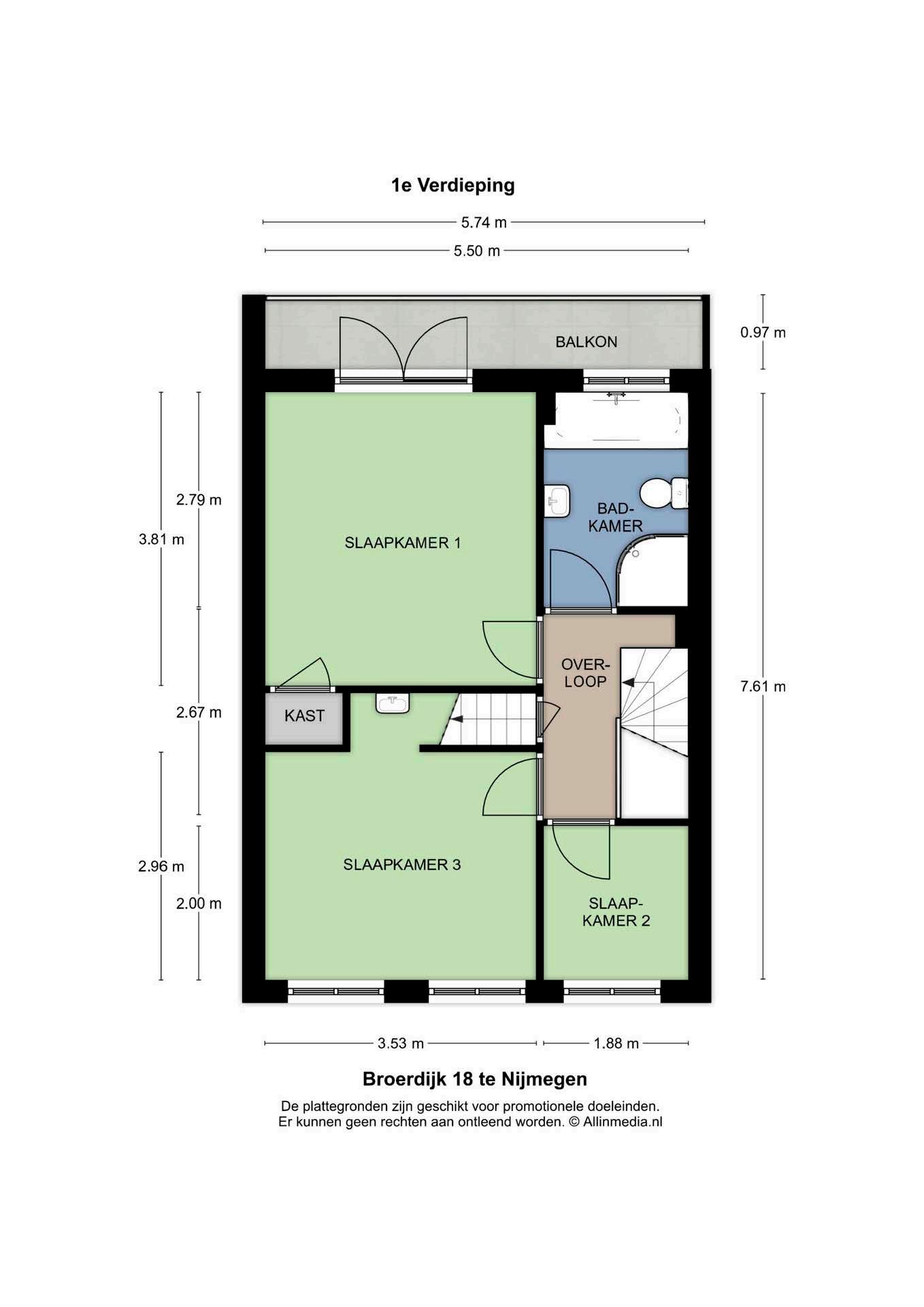 Er is een echte stadstuin, en daarnaast zijn er op twee niveau’s nog balkons waarop je (ook heel vroeg of laat in het jaar) bijna altijd zon hebt. Naast de ‘gewone’ drie woonverdiepingen is er een erg ruime onderverdieping (op dit moment in gebruik als atelier), met grote uitslaande deuren naar de tuin. De wijk biedt alles wat je wilt: goede scholen in de buurt, veel winkels, café’s en terrassen. En toch is het huis rustig gelegen: zittend in de tuin of op de balkons valt het geluid van Nijmegen bijna weg.
