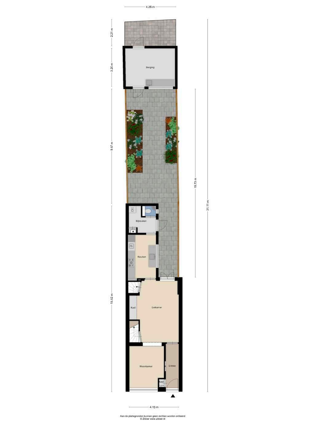 De bijkeuken is een onmisbare toevoeging voor elk gezin. Hier vind je de aansluiting voor de wasmachine en extra opbergruimte voor al je huishoudelijke benodigdheden. De praktische inrichting maakt het eenvoudig om het huishouden efficiënt te regelen. Bovendien biedt deze ruimte directe toegang tot de tuin en de volledig geïsoleerde stenen berging, die is uitgerust met elektra en water, en een handige achterom.