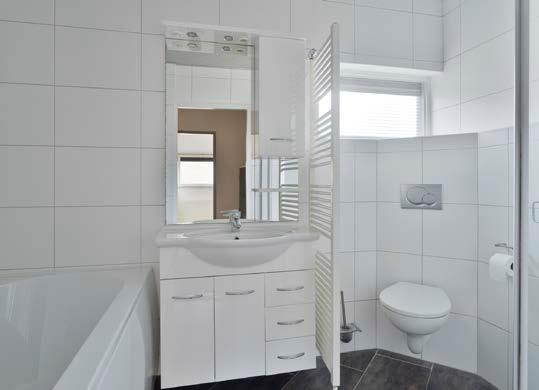 Met de moderne badkamer transformeert iedere ochtendroutine in een wellness-ervaring. Het ligbad nodigt uit tot lange, luie sessies na een drukke dag, terwijl de aparte douche ruimte biedt voor een snelle, verkwikkende start van de ochtend. De badkamer combineert functionaliteit met een tijdloos ontwerp.