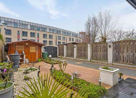 De tuin biedt een fijne plek om te ontspannen met veel zon. De overkapping maakt het mogelijk om ook bij minder mooi weer buiten te zijn. De garage biedt handige extra ruimte voor opslag.