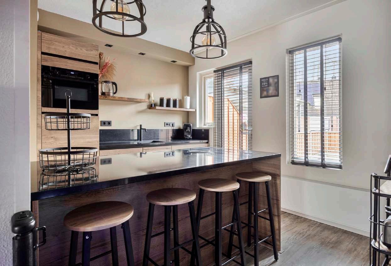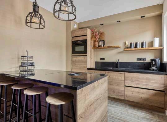 De keuken aan de voorzijde is in 2024 volledig vernieuwd en ingericht met moderne inbouwapparatuur. Denk aan een energiezuinige koelkast, een combi-magnetron, een inductiekookplaat en een vaatwasser. Hier heb je alles binnen handbereik en kun je met plezier koken voor je gezin of vrienden.