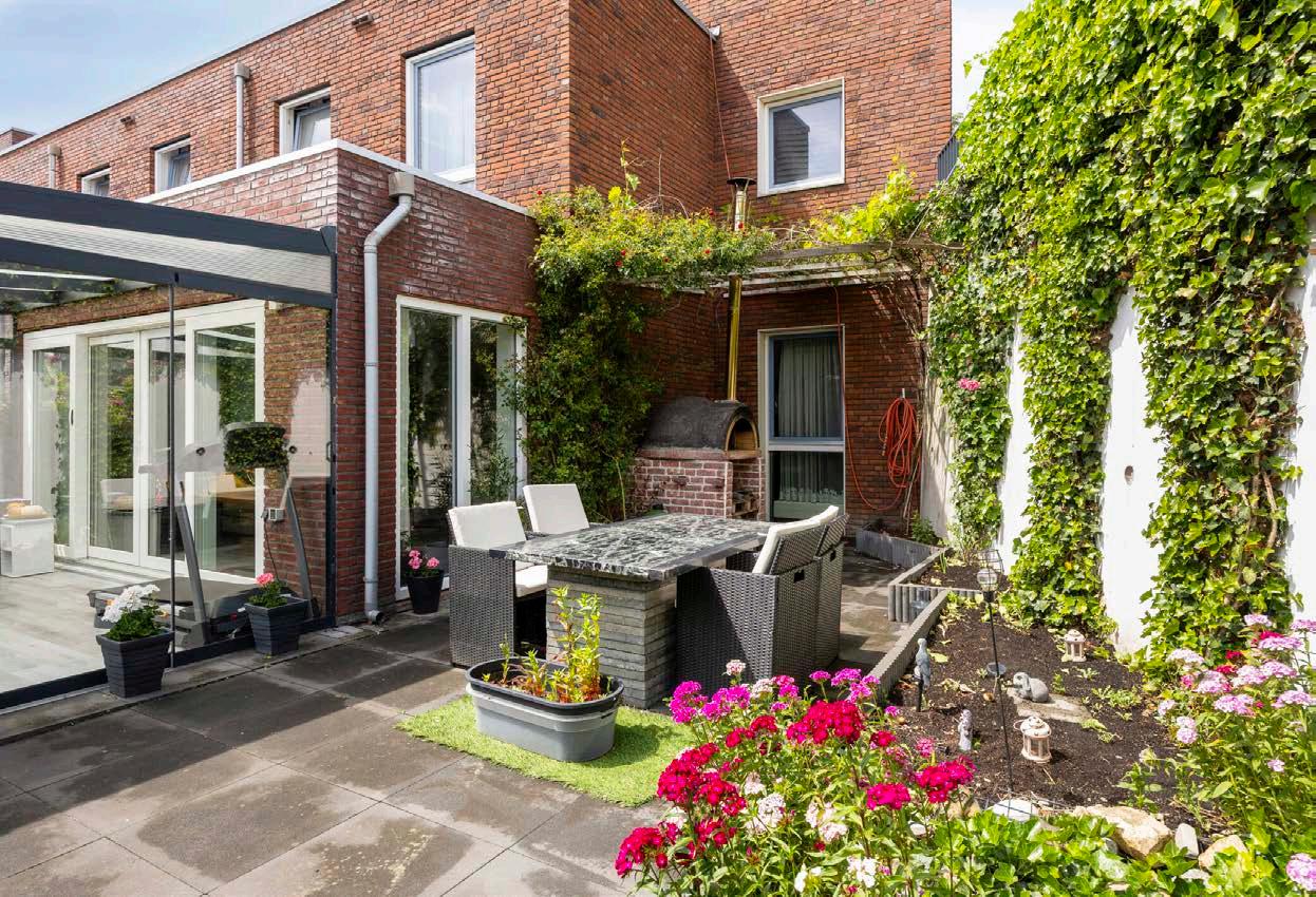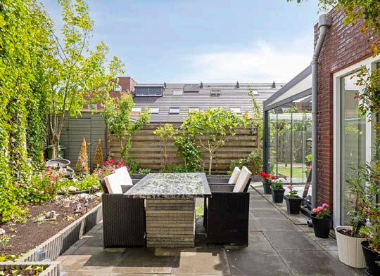 De buitenruimte van deze woning bestaat uit een ruime tuin die een speeltuin kan zijn voor de kleintjes of een plek voor volwassenen die willen genieten van een rustig moment in de buitenlucht. Het biedt de perfecte setting voor zomerse barbecues of het koesteren van de zon in alle privacy.