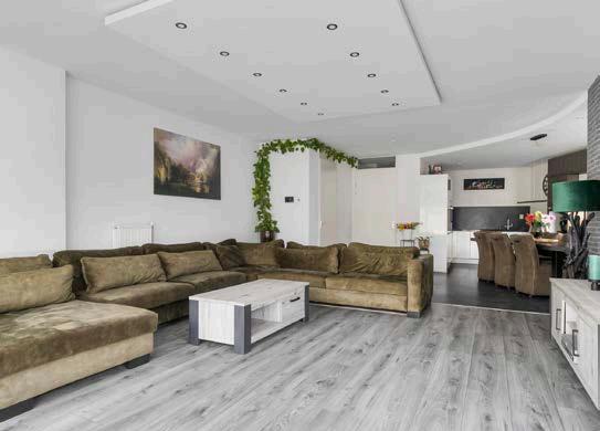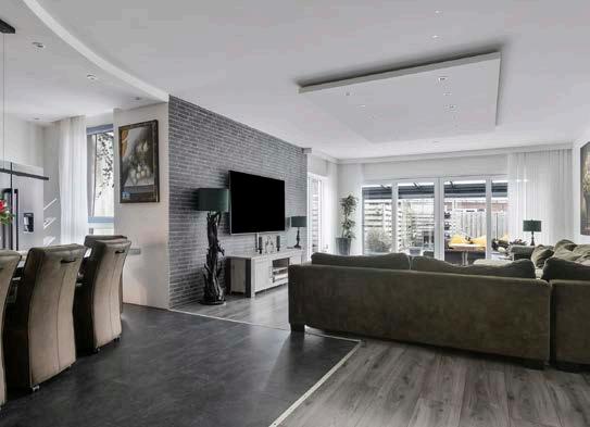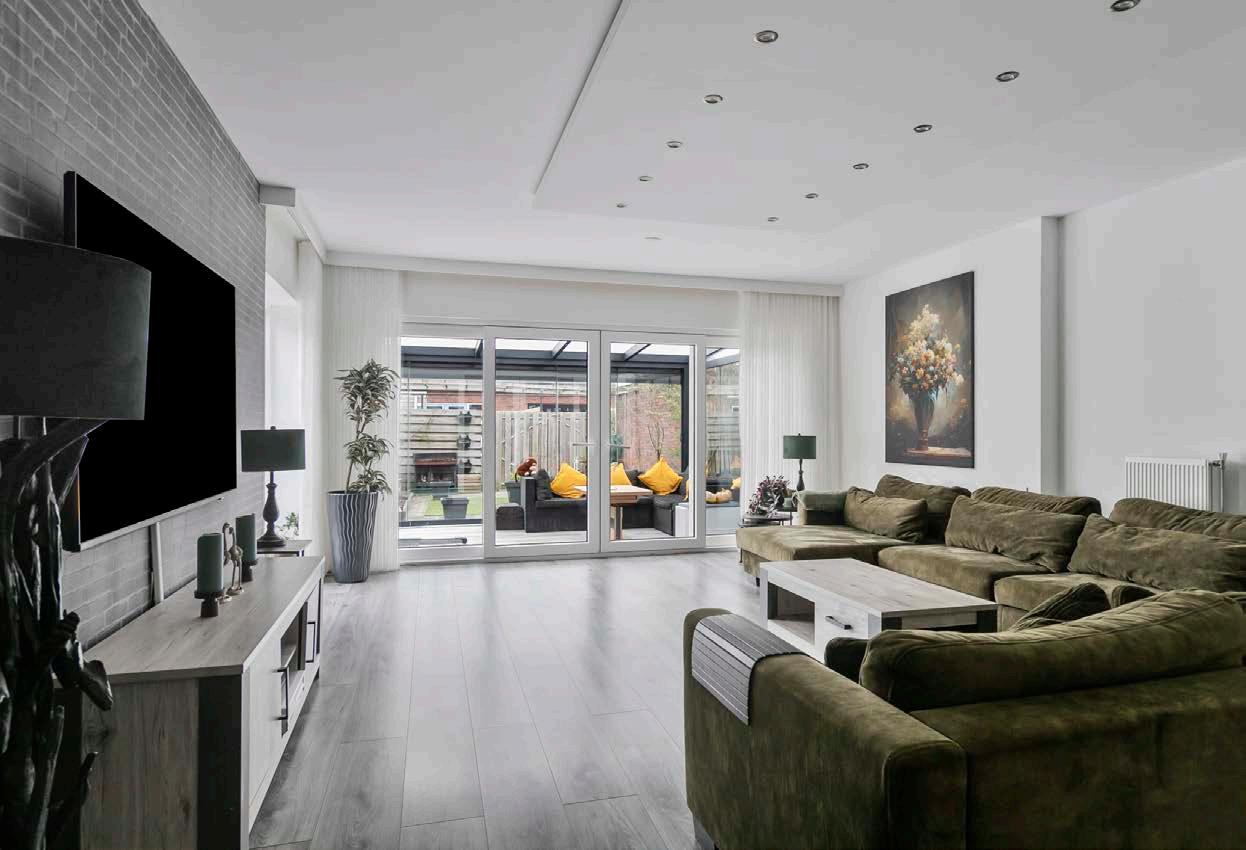 Laat je verrassen door de opvallend ruime woonkamer. Dankzij de aanbouw met de serre ontstaat er een natuurlijke stroom van binnen naar buiten, waardoor de seizoenen voelbaar samen komen in je leefruimte. De wanden zijn strak gestuukt en er ligt een kwalitatieve laminaatvloer die zowel praktisch als stijlvol is.