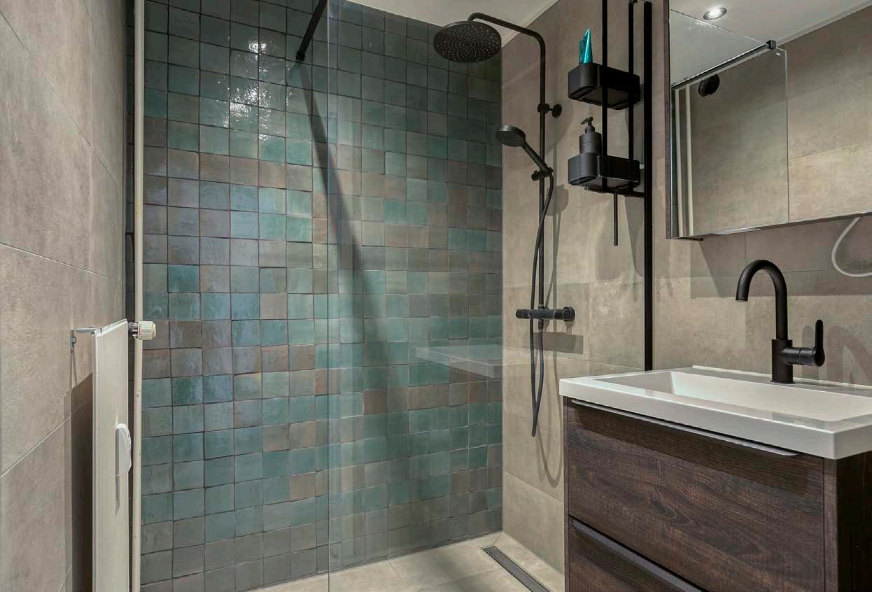 De badkamer, ook gerenoveerd in 2023, is voorzien van een inloopdouche en een vaste wastafel. Het separate (vernieuwde) toilet zorgt voor extra gemak en privacy voor de bewoners en gasten. De wasruimte is apart van de badkamer, wat praktisch is voor het opbergen van wasmachines en andere huishoudelijke apparatuur.