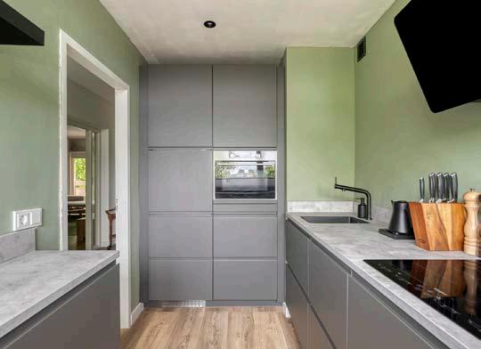 De keuken, die in 2023 is vernieuwd, is gescheiden van de woonkamer en beschikt over een praktische opstelling met inbouwapparatuur. Hier kun je eenvoudig maaltijden bereiden en heb je genoeg ruimte om al je kookgerei netjes op te bergen.