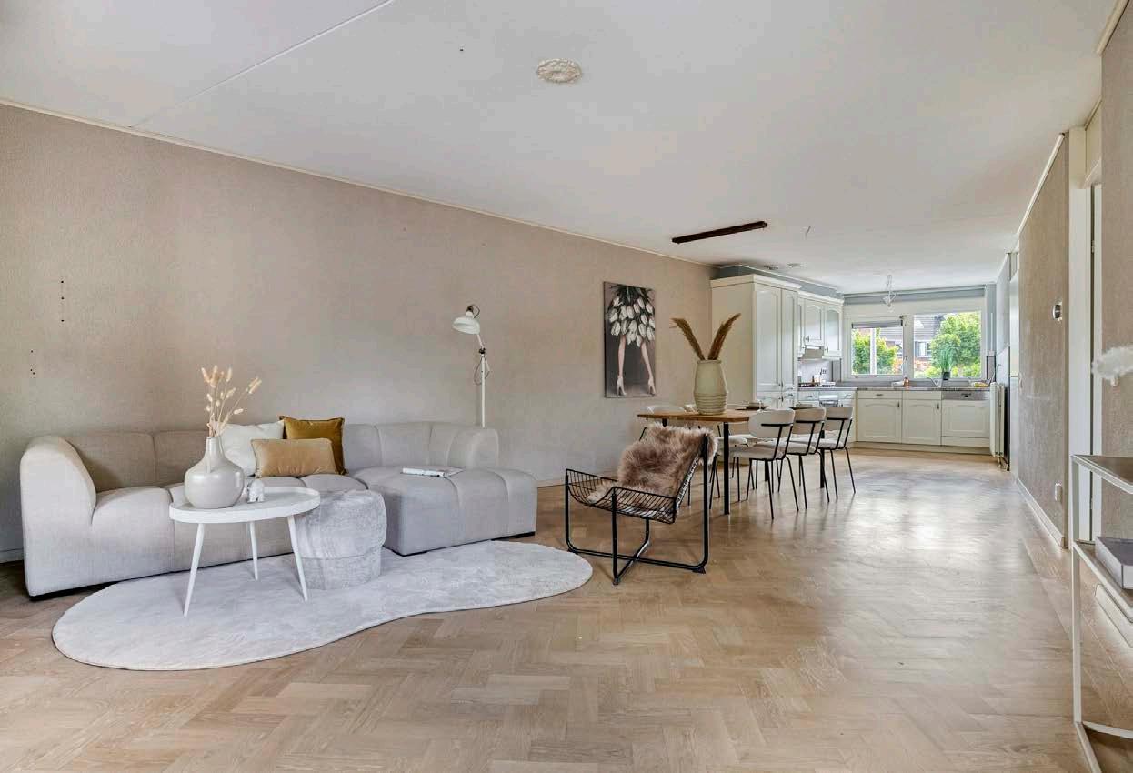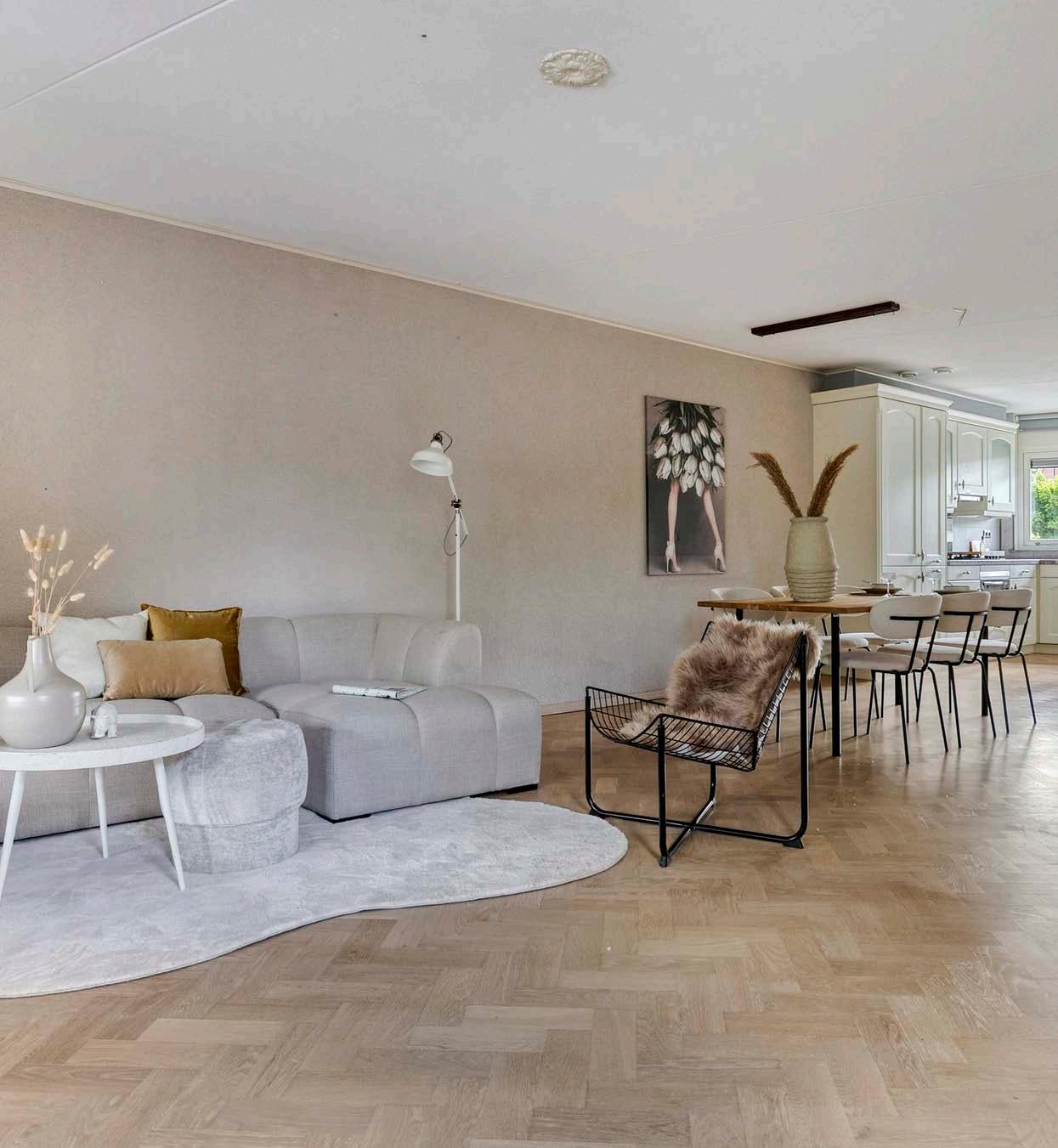 De woonkamer is prettig van formaat en biedt talloze opties om er een gezellige leefruimte van te maken. Met de op het westen gelegen tuin, wordt binnen en buiten één geheel. Sta je je voor te stellen hoe je hier op een warme zomeravond geniet van een goed glas wijn terwijl je de zon ziet ondergaan? Of hoe je vrienden en familie uitnodigt voor een barbecue in deze zonnige tuin? Hier kan het allemaal.