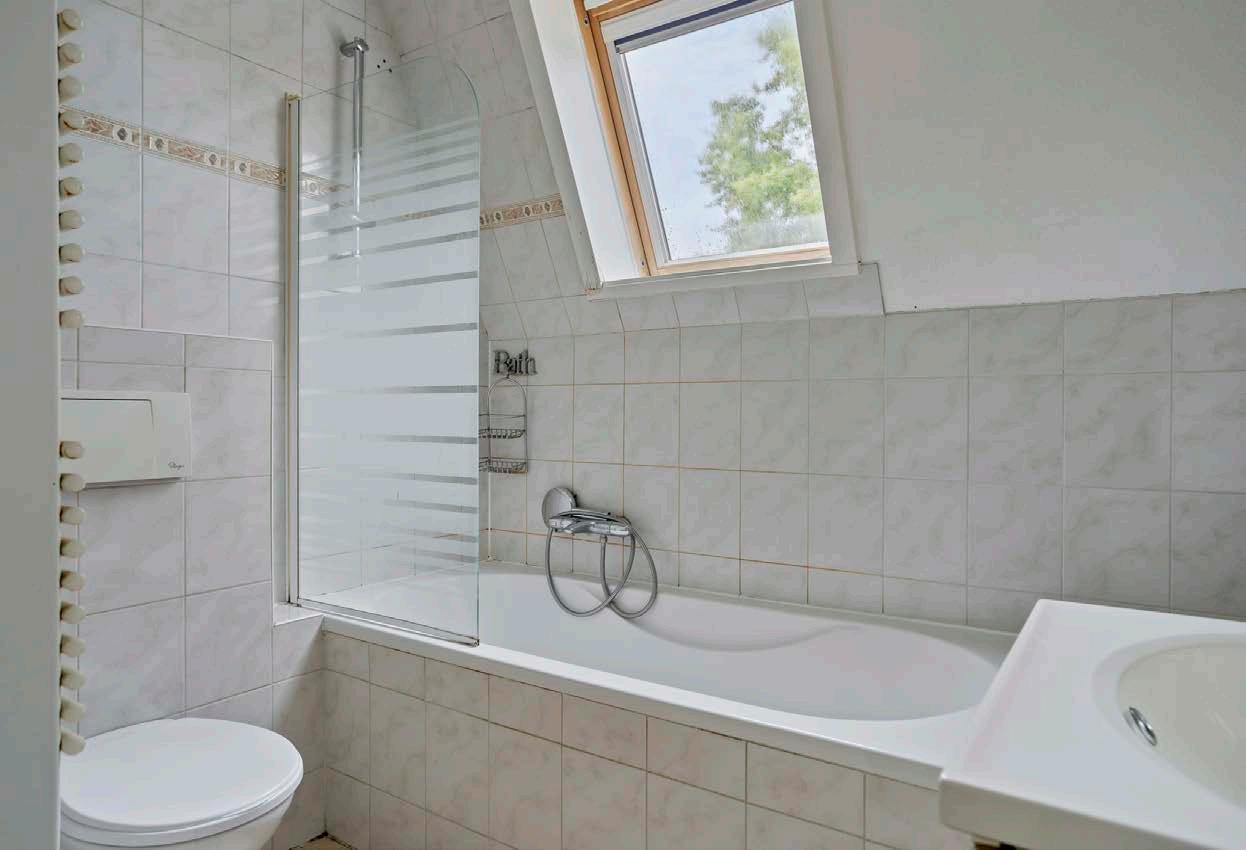 Badkamer is ruim, voorzien van toilet, douche en wastafel