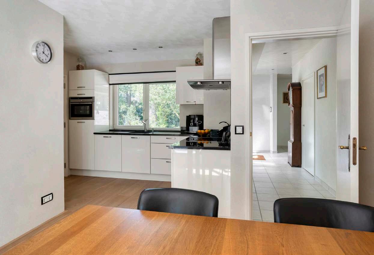De dichte woonkeuken bevindt zich naast de woonkamer en is voorzien van diverse inbouwapparatuur, klaar om heerlijke maaltijden te bereiden. Met een praktische indeling en voldoende werkruimte belooft dit een plek te zijn waar koken moeiteloos wordt. Vanuit de keuken heb je bovendien toegang tot de handige bijkeuken en bergruimte, ideaal om alles wat je niet dagelijks gebruikt netjes op te bergen.