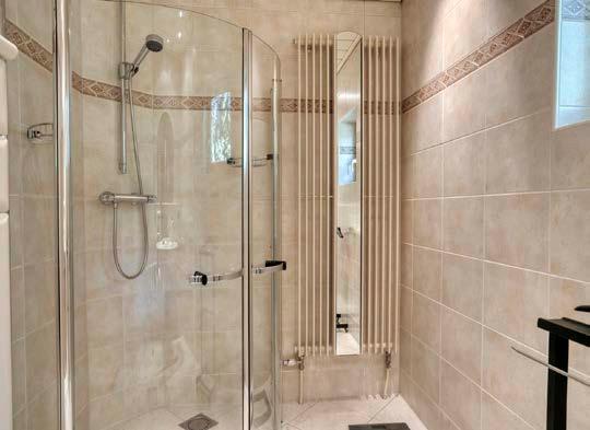 De badkamer is voorzien van een douche en wastafel. Daarnaast is er een apart toilet, praktisch gelegen en altijd handig.
