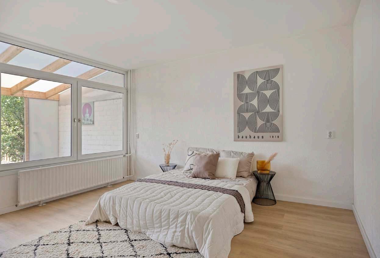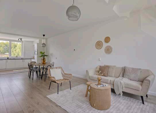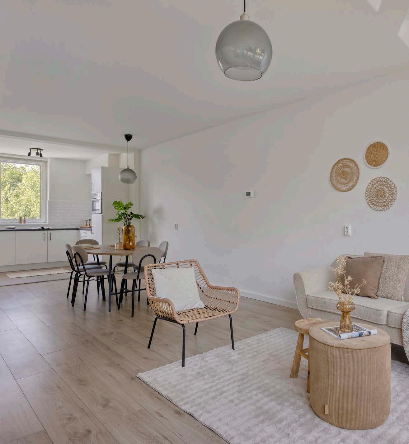 Stel je voor: je opent de voordeur en voelt je meteen thuis. De warm getinte vloer en grote ramen zorgen voor een lichte, open uitstraling. De woonkamer is zo’n plek waar je alles kunt doen – of je nu lekker op de bank neerploft na een lange dag, vrienden uitnodigt voor een borrel of een filmavond organiseert.